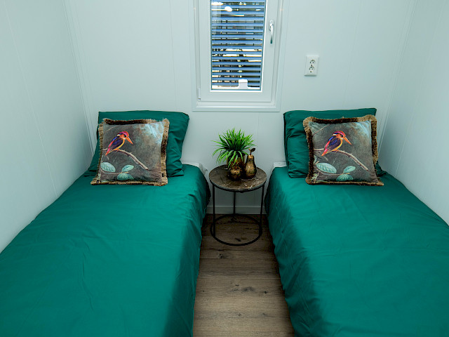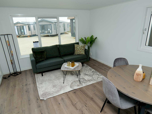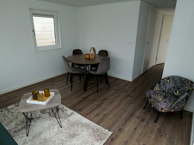 The Bergjes Vulture has a well-equipped kitchen, a cozy spacious living room with garden doors and of course two nice bedrooms and a bathroom. You can customize this model by, for example, adding additional luxury options. Furthermore, the Vulture is a Bergjes Green Label chalet. This means that it is super well insulated with outer walls of up to 12 cm thick, but also that it is fully electrically equipped. Furthermore, this model is completely built in our sustainable factory in the Netherlands so we can offer real Dutch quality with the lowest price guarantee.
