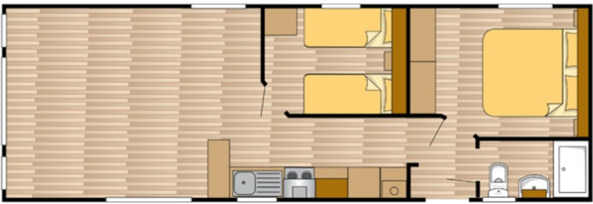 This beautiful mobile home offers a spacious entrance where you can effortlessly hang up coats and bags. The generous entrance immediately gives a sense of space and hospitality, making you feel right at home. The Ocean Super Plus features a modern U-shaped kitchen, complete with a cooker, extractor hood, built-in fridge and freezer. There's even room for a microwave and the option to add a dishwasher, so you'll be fully equipped.