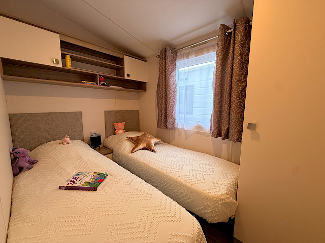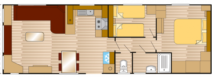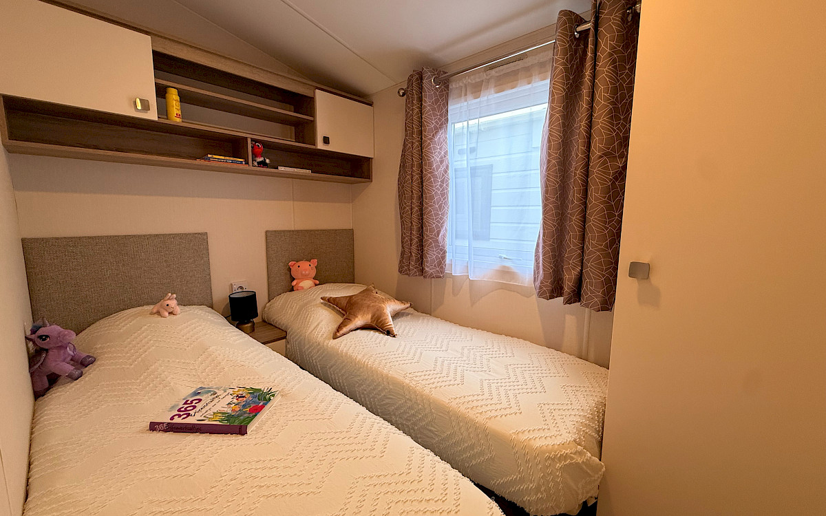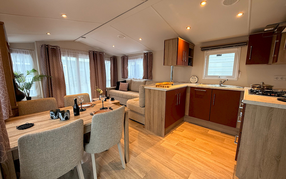 The Es Vedra is a fresh and accessible chalet. The light colours combined with red and wood instantly give you the feeling of being by the sea. In addition, this model offers a surprising amount of storage space for all your belongings.