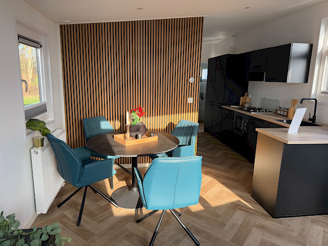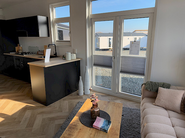 Did you know that this model is not only on display at our showgrounds, but also at Camping De Boomgaard? Here we offer an all-inclusive package: you purchase the chalet including a permanent pitch at this campsite. Find out more about our all-inclusive offer at De Boomgaard here.