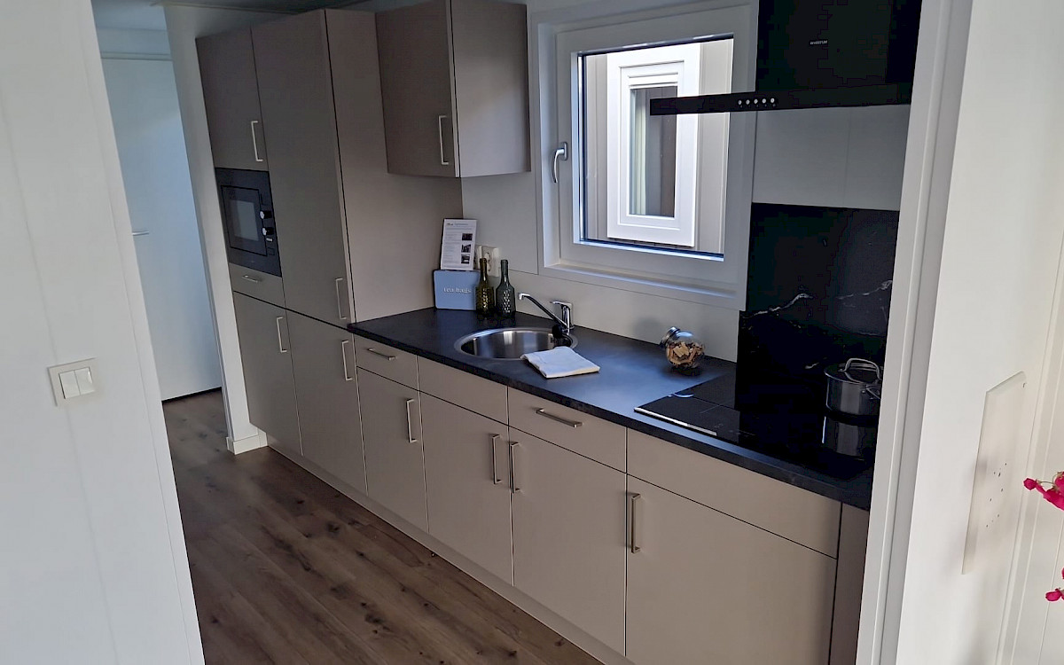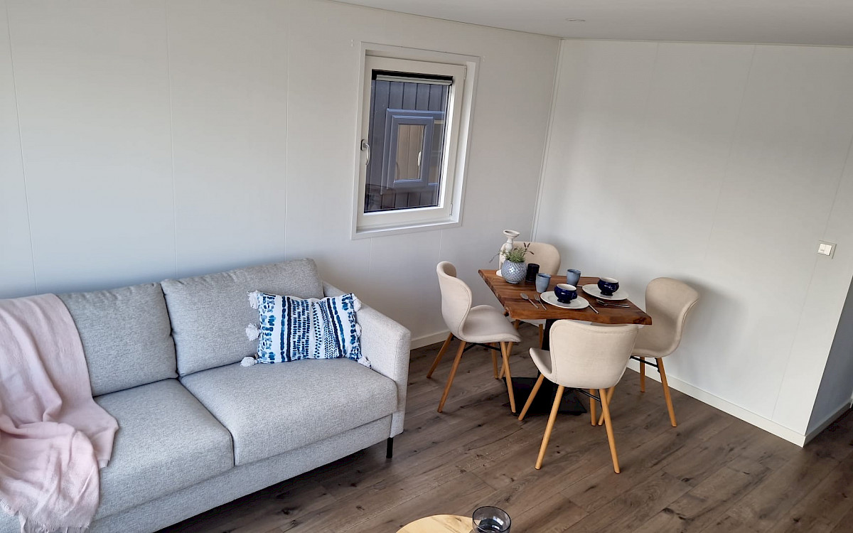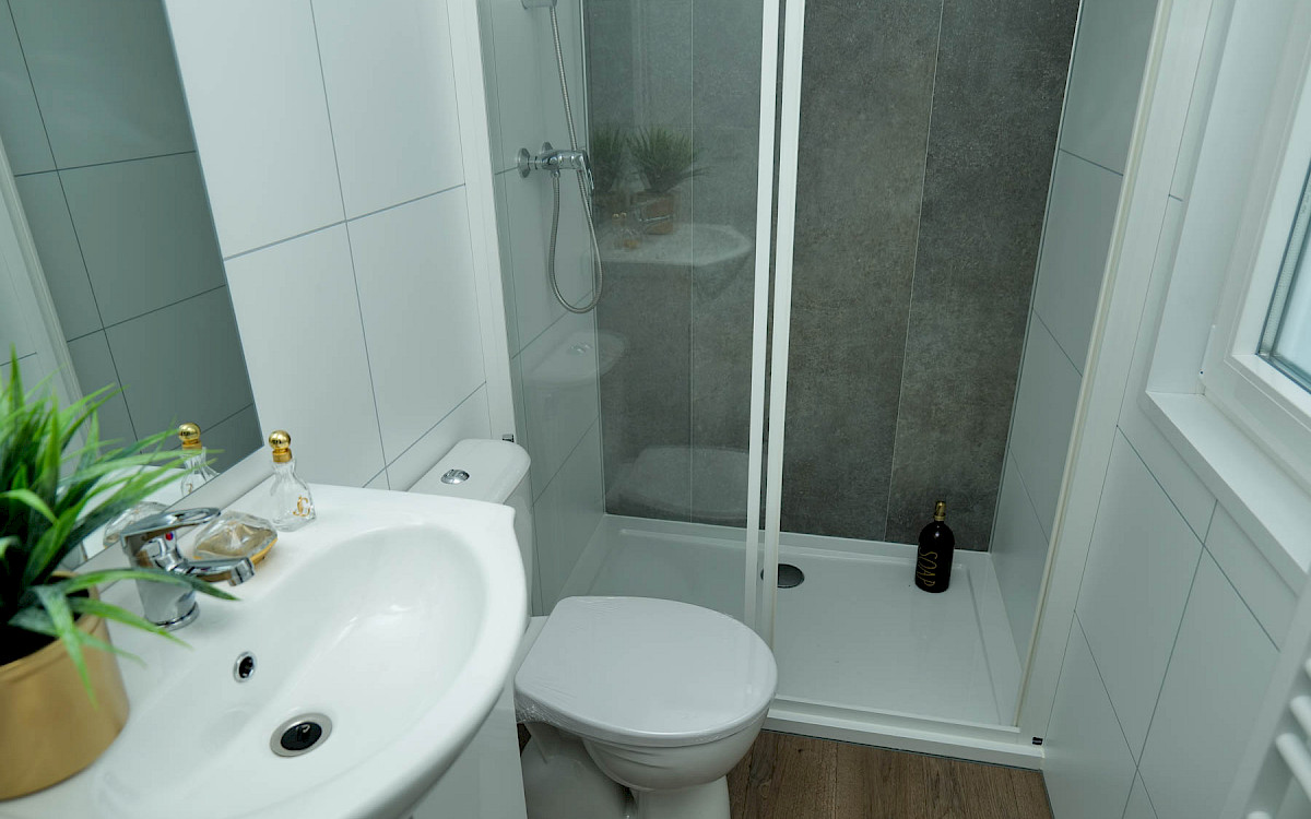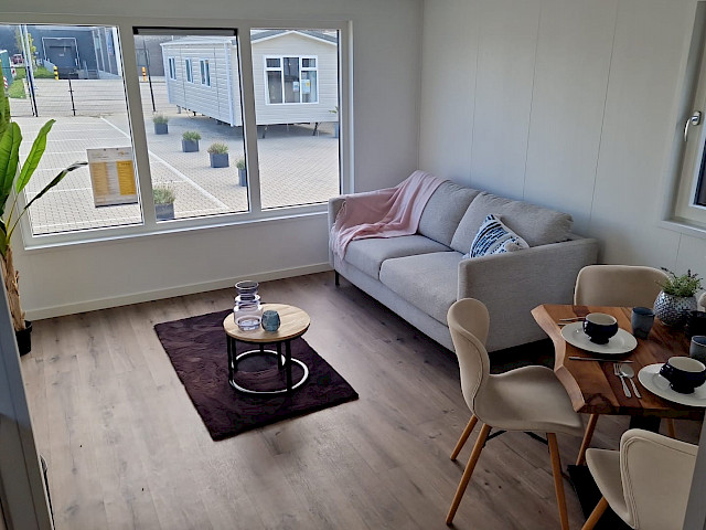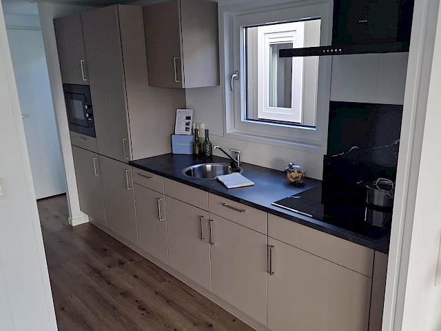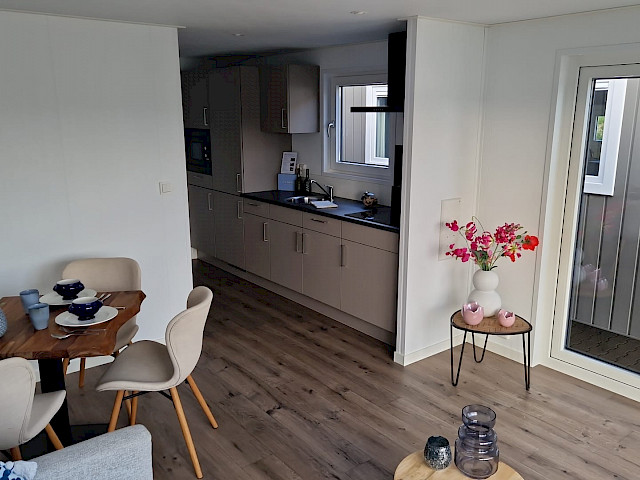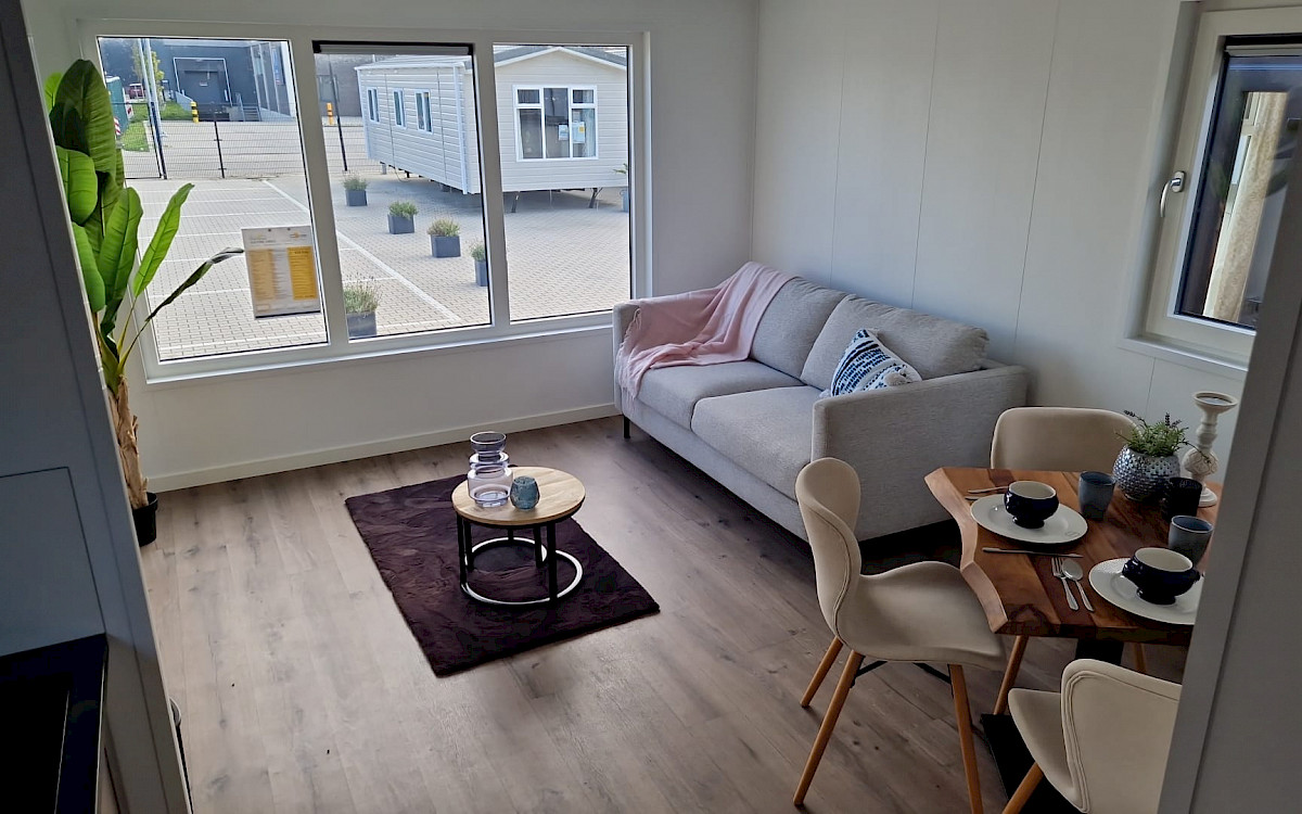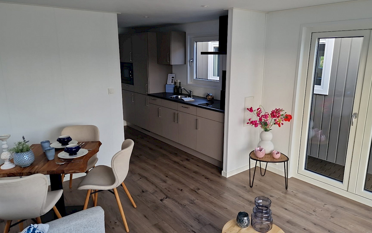The Bergjes Vulture has a well-equipped kitchen, a cozy spacious living room with garden doors and of course two nice bedrooms and a bathroom. You can customize this model by, for example, adding additional luxury options. Furthermore, the Vulture is a Bergjes Green Label chalet. This means that it is super well insulated with outer walls of up to 12 cm thick, but also that it is fully electrically equipped. Furthermore, this model is completely built in our sustainable factory in the Netherlands so we can offer real Dutch quality with the lowest price guarantee.