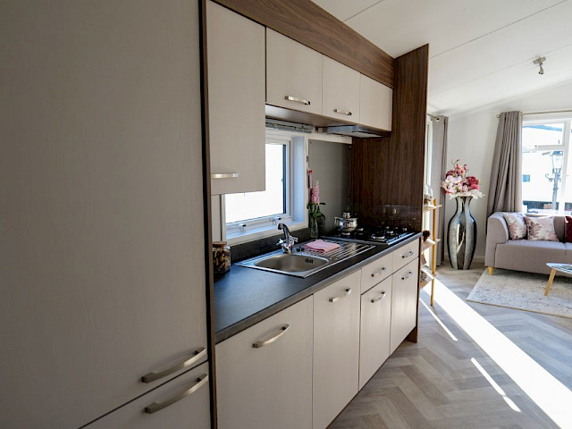 Our Premium Chalet is built to exceptional standards! You will love how solid the Premium Chalet feels and how luxurious the Premium Chalet is equipped. The Premium Chalet is very well isolated, which makes it perfect for use in both summer and winter months. In addition, the Premium Chalet comes standard with the most luxurious options, this can be seen in the bathroom, the kitchen and the bedrooms! Because of the large dimensions and, this model feels very spacious!