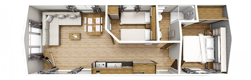 Our Premium Chalet is built to exceptional standards! You will love how solid the Premium Chalet feels and how luxurious the Premium Chalet is equipped. The Premium Chalet is very well isolated, which makes it perfect for use in both summer and winter months. In addition, the Premium Chalet comes standard with the most luxurious options, this can be seen in the bathroom, the kitchen and the bedrooms! Because of the large dimensions and, this model feels very spacious!