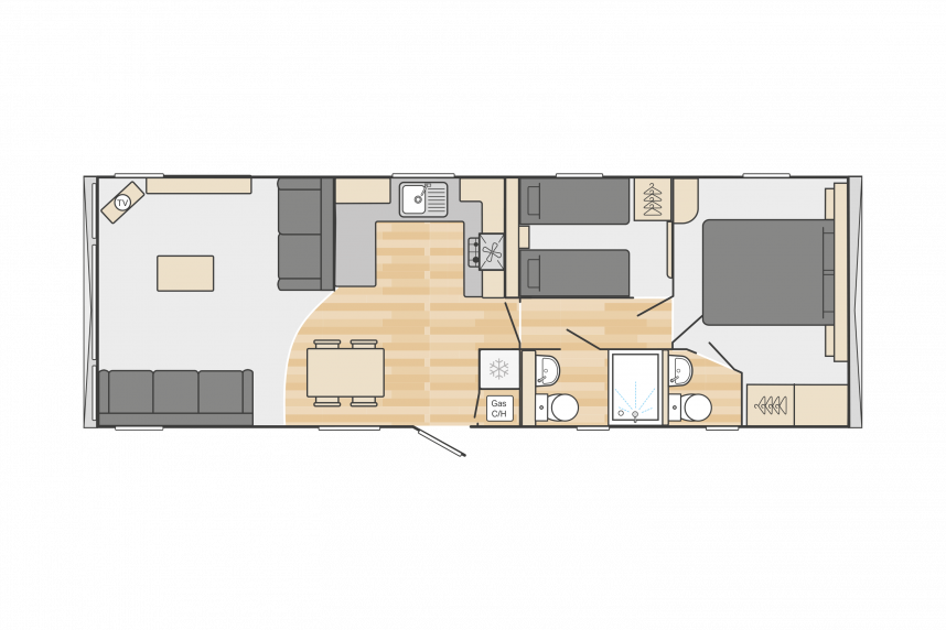 The Swift Bordeaux is very stylishly furnished, a holiday accommodation that is not only fashionable but also very practical. The living room of the Bordeaux has plenty of natural light thanks to the large sliding doors at the front of the chalet. It also features a luxurious U-shaped kitchen with beautiful details and comfortable furniture. The Bordeaux is available with a lovely bathroom. The Swift Bordeaux is the ideal recreational chalet for creating beautiful memories with your loved ones.