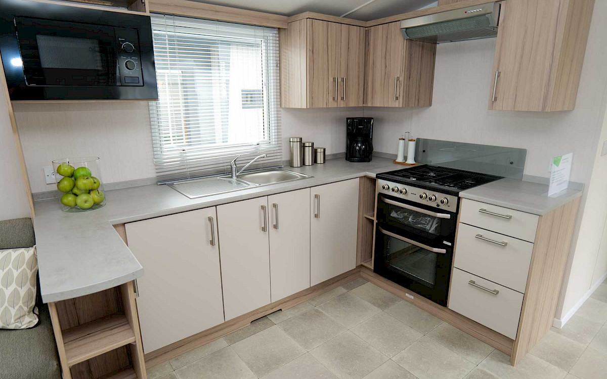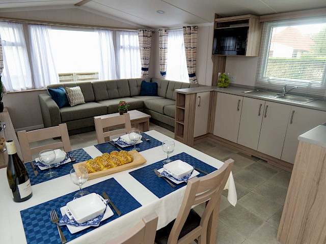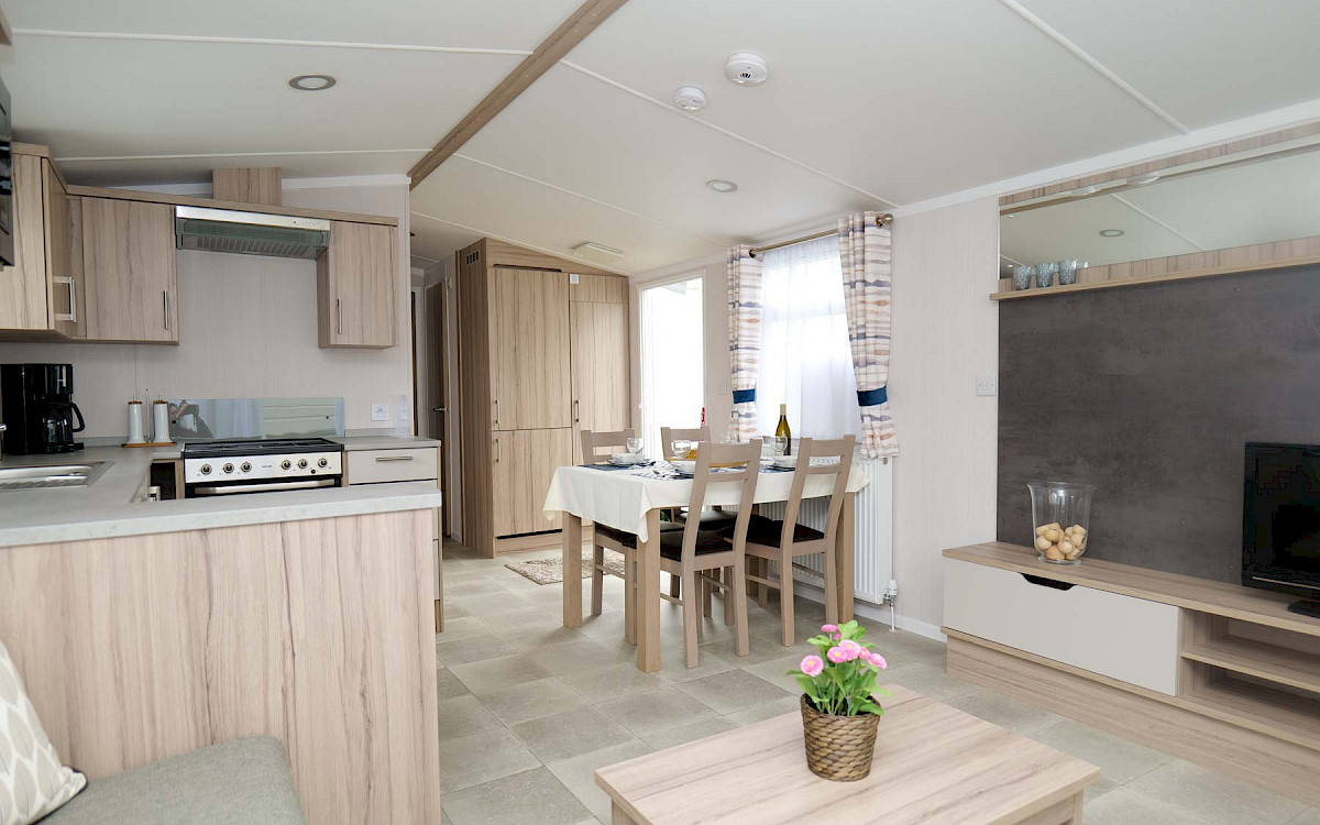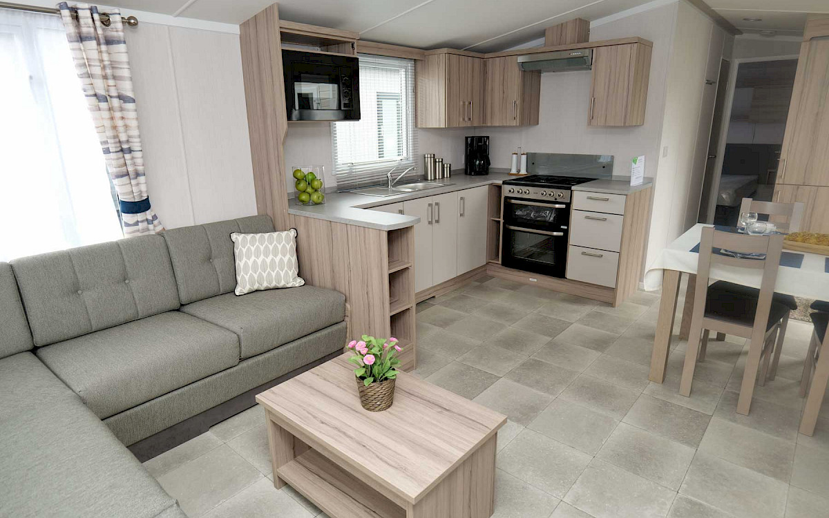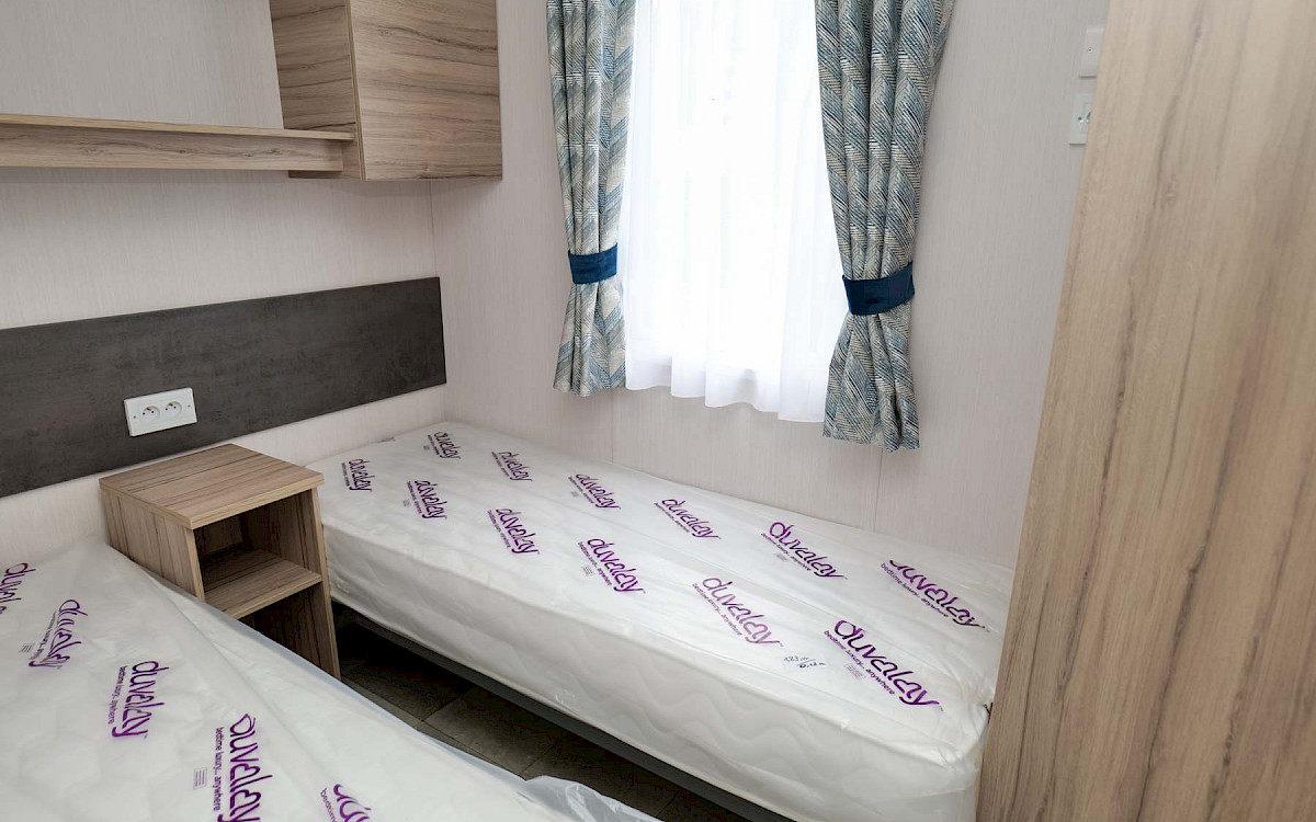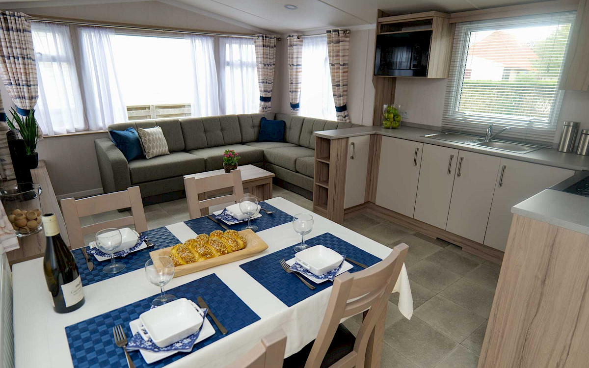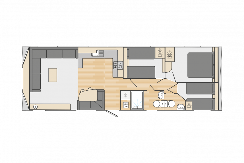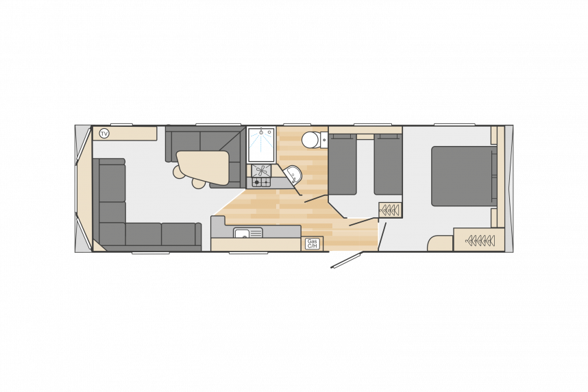 The Loire is light, fun, functional and inspired by the coast. You can choose from models of 10 and 11 metres long. The Loire is truly a family-friendly leisure chalet and has good value for money, as well as very extensive options. In the living room, for example, you will find a spacious corner bench that can also be used as a sofa bed. The bedrooms are equipped with luxury mattresses and a TV connection. Curious? You are welcome to come and view this model in our showroom.