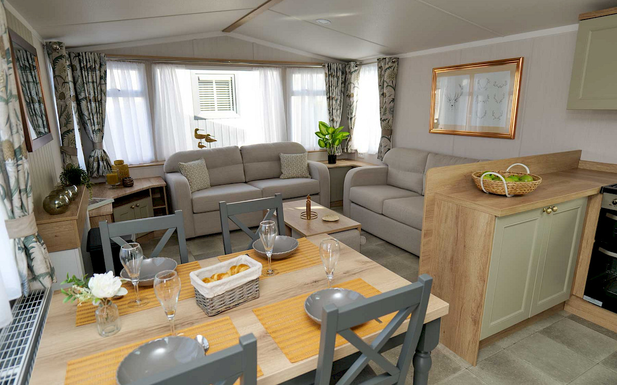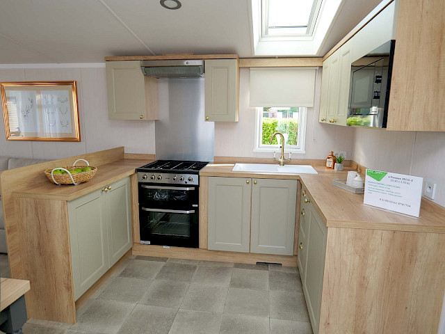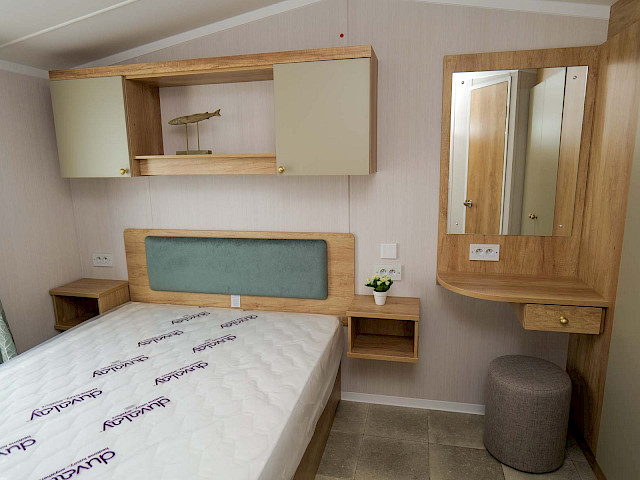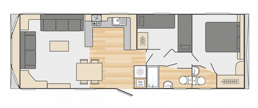 Buying a mobile home to enjoy? Then take a look at this beautiful Swift Provence! Well-insulated, "sandy-beige" exterior cladding with white window frames and a chic interior. When you enter this model, you will see a luxurious U-kitchen with gold-coloured tap, and a fine living room. Through a connecting door, you will enter the sleeping area of this mobile home. Two large bedrooms with luxurious details and a fine bathroom ensure you can rest well during your stay. Curious about the Swift Provence? Visit our showroom!