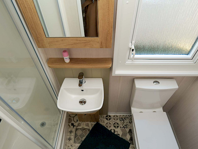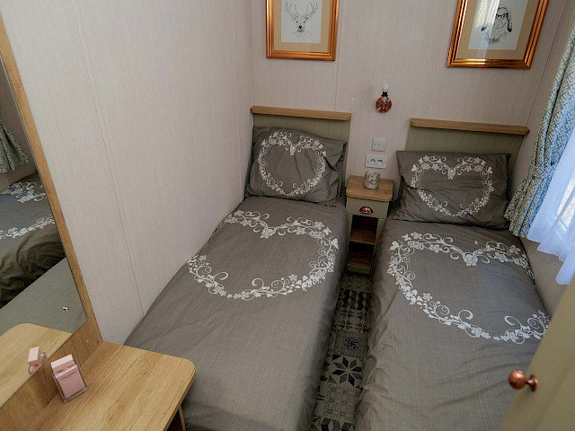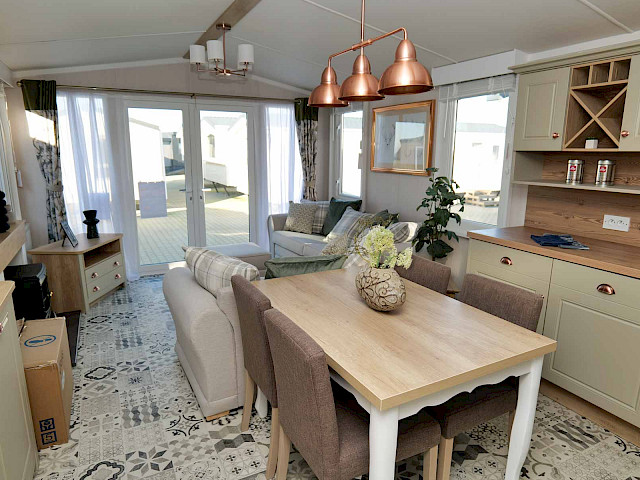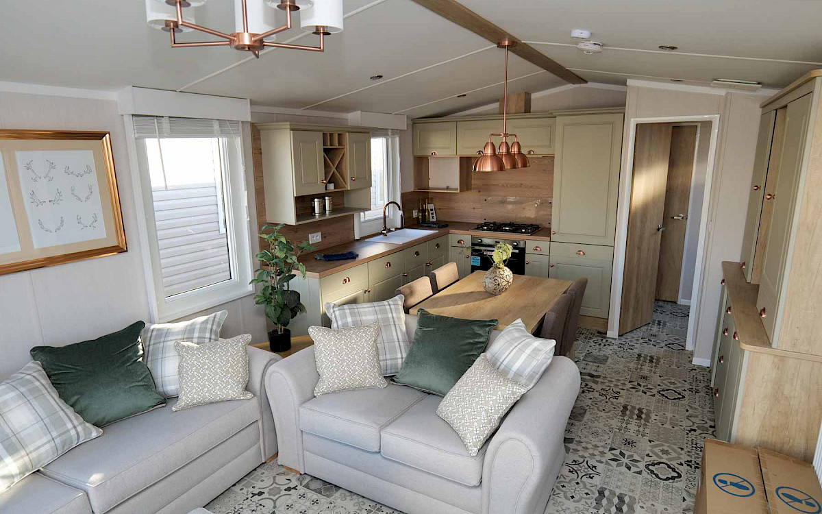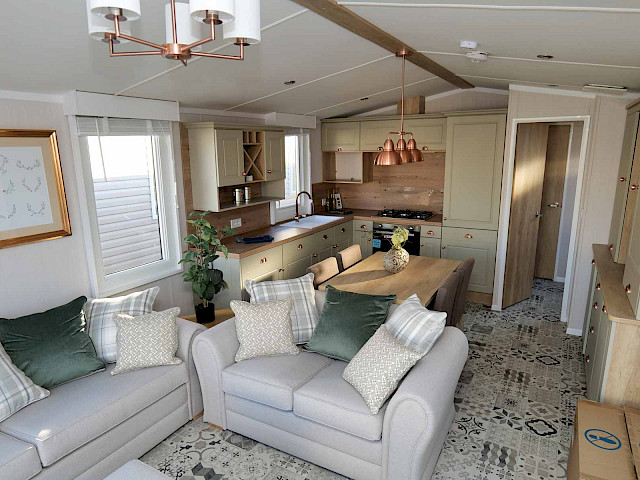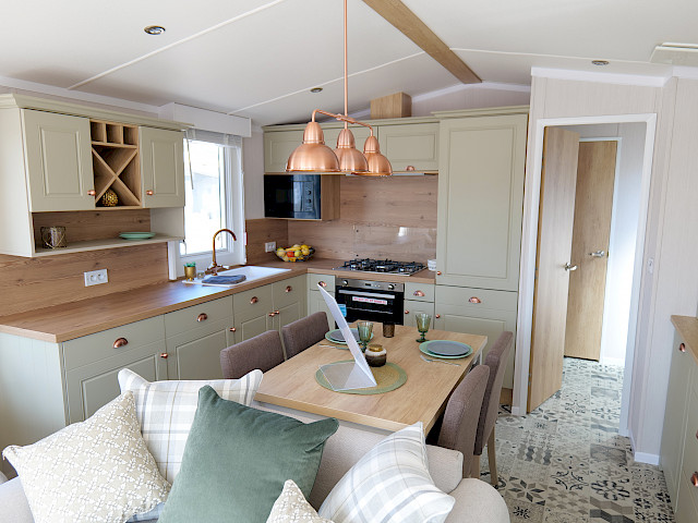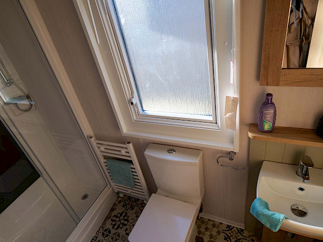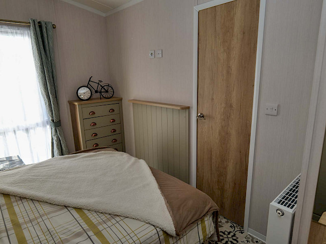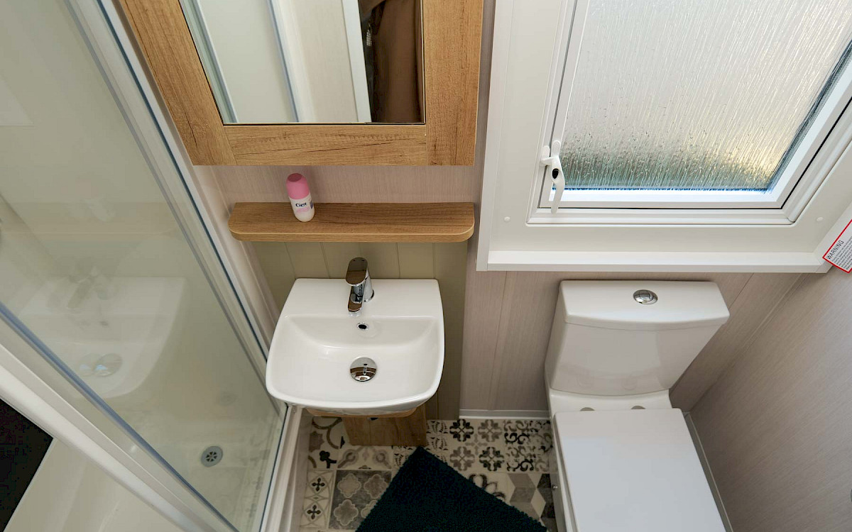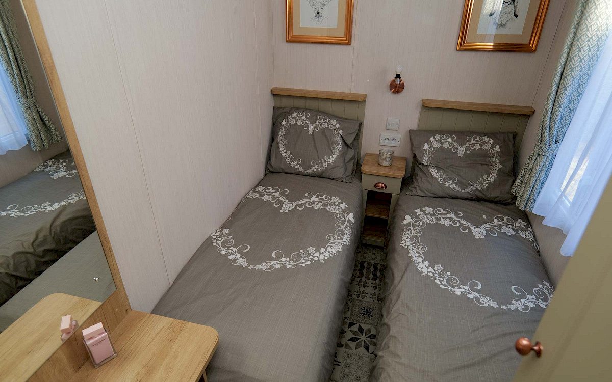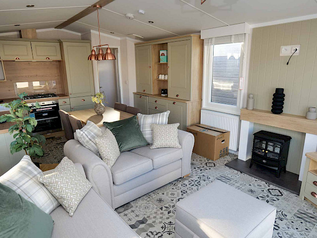 The Swift Vendee is a very luxurious holiday home inside and out. The Vendee is surprisingly spacious with its large living room, hall with coat rack and sofa, master bedroom with en-suite bathroom and second bedroom. After entering the spacious hall , you enter the luxurious living-dining area on the left. The sofas are wonderfully soft and offer the ultimate comfort. The living room also has a television and a luxurious electric fireplace. The beautiful kitchen with copper details is richly equipped with, among other things, an integrated fridge-freezer, a microwave oven and an integrated wine rack! This holiday chalet has 2 bedrooms and 2 full bathrooms. This way, you can easily accommodate four people on holiday.