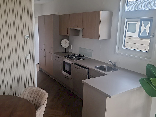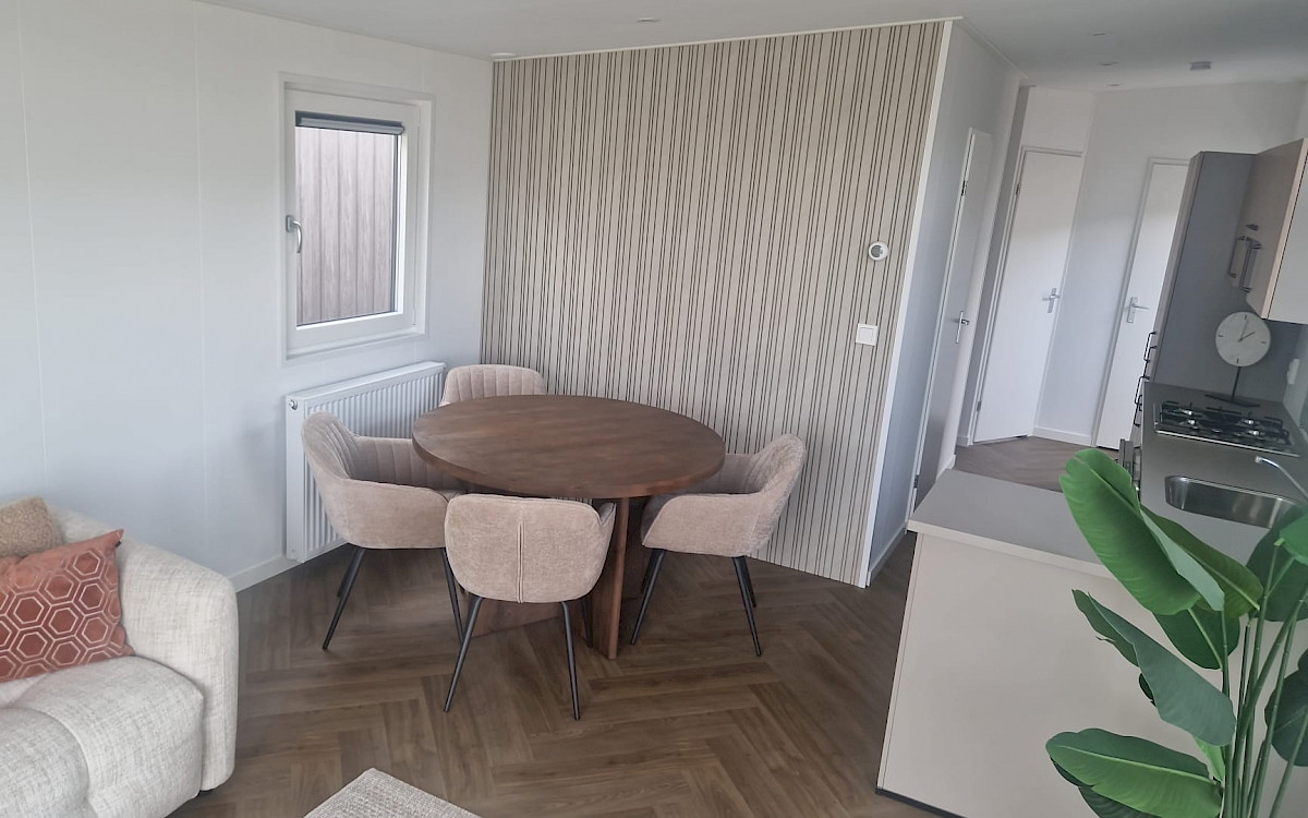 Did you know that this model is not only on display at our showgrounds, but also at Camping De Boomgaard? Here we offer an all-inclusive package: you purchase the chalet including a permanent pitch at this campsite. Find out more about our all-inclusive offer at De Boomgaard here.