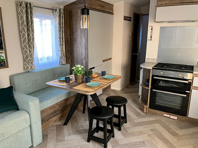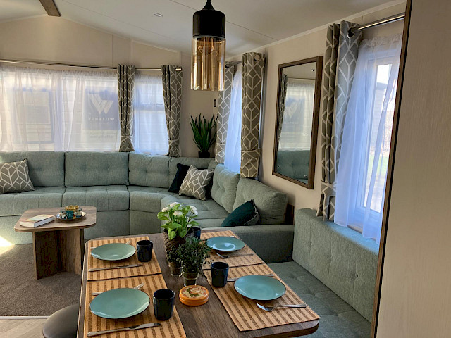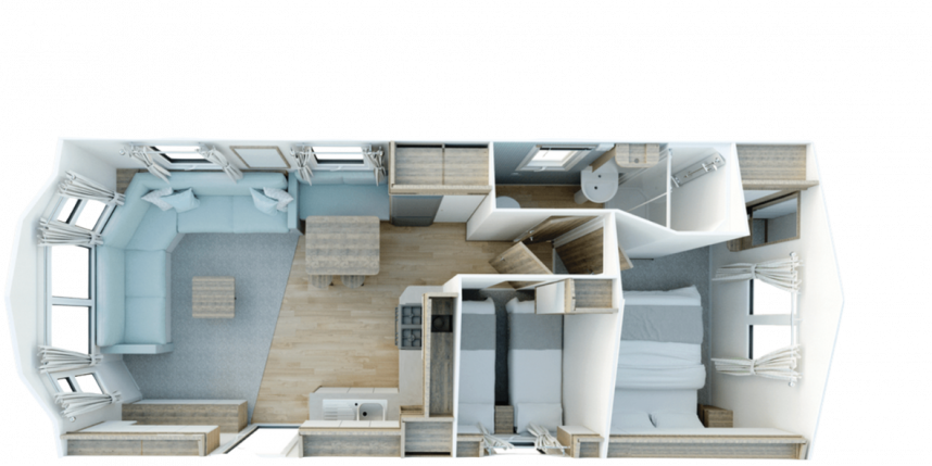 The Willerby Brookwood is unique thanks to its large open-plan living room, stylish bar and luxurious eco-friendly lighting. The luxurious bathroom furniture, en-suite toilet in the master bedroom and cooker with oven ensure that this mobile home is equipped with every convenience. The Willerby Brookwood is the perfect environment to enjoy yourself.