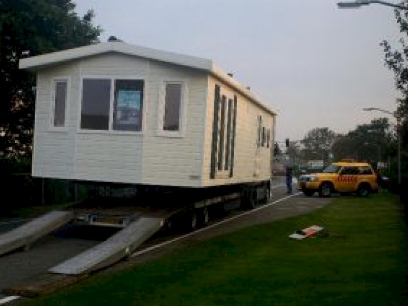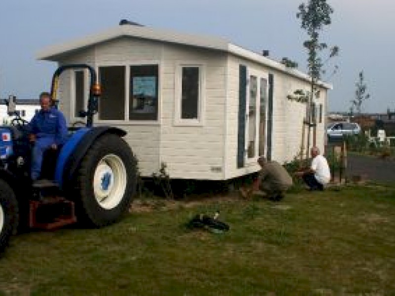 Wij zijn meer dan tevreden over de vakkundigheid en de voorzichtigheid waarmee Michel en Dave het chalet naar ons stukje grond hebben gemanoeuvreerd, dat was een gigantische klus waarbij regelmatig minder dan enkele centimeters speling overbleef.