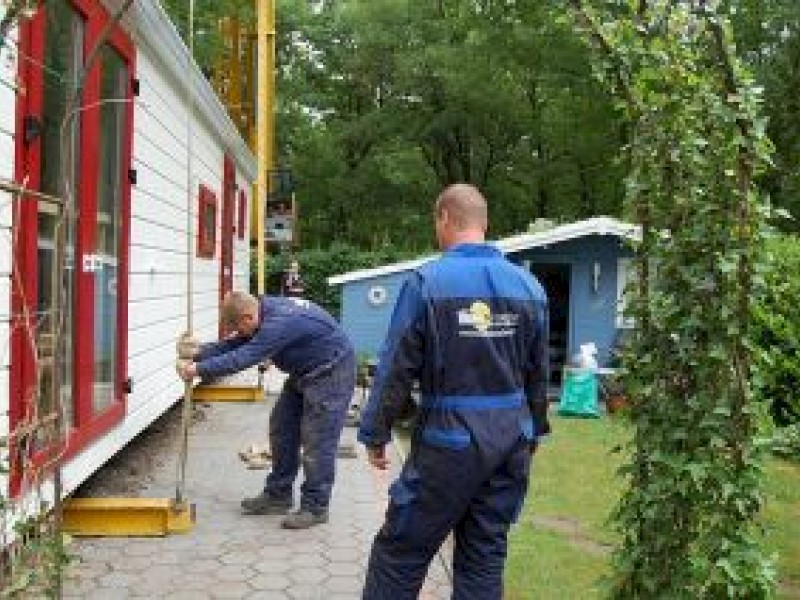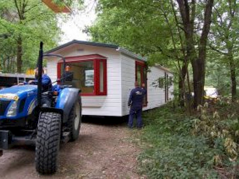 Het chalet is woensdag de 18de geplaatst, het is even wennen, maar het heeft wel veel meer allure dan de vorige caravan.